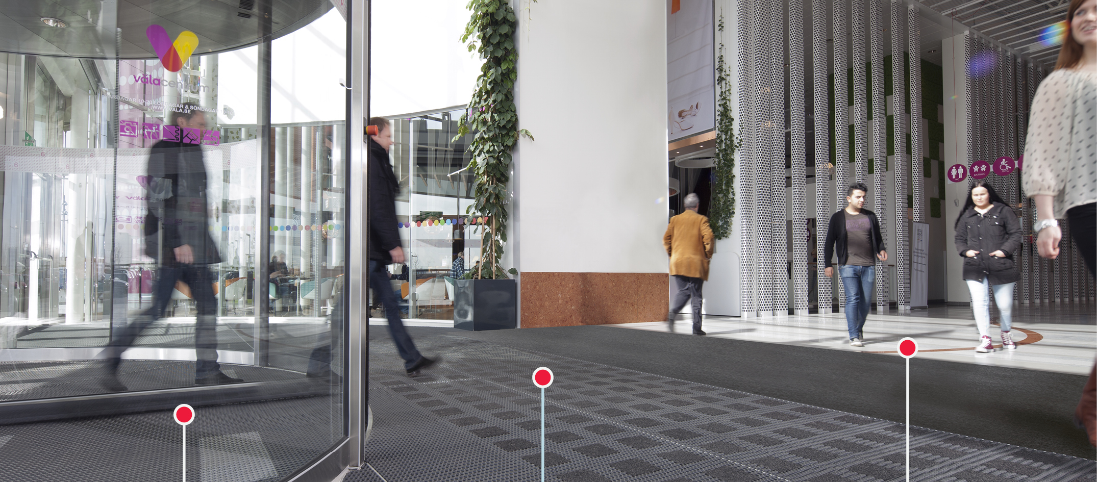 TRAFIKZON Övergången mellan själva entrén och reception, hissar, etc. I det nordiska klimatet med mycket smuts och slask under en stor del av året är trafikzonen extra viktigt - här ska de sista resterna tas om hand. |